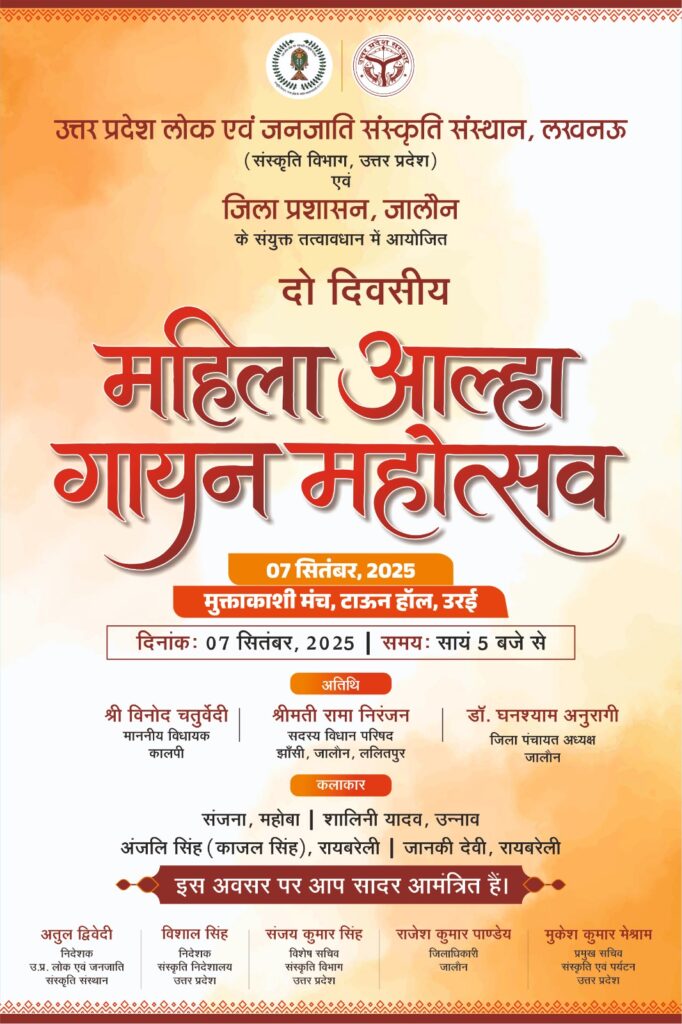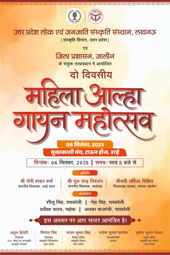 दो दिवसीय महिला आल्हा गायन महोत्सव, उरई जालौन 6,7 सितंबर 2025